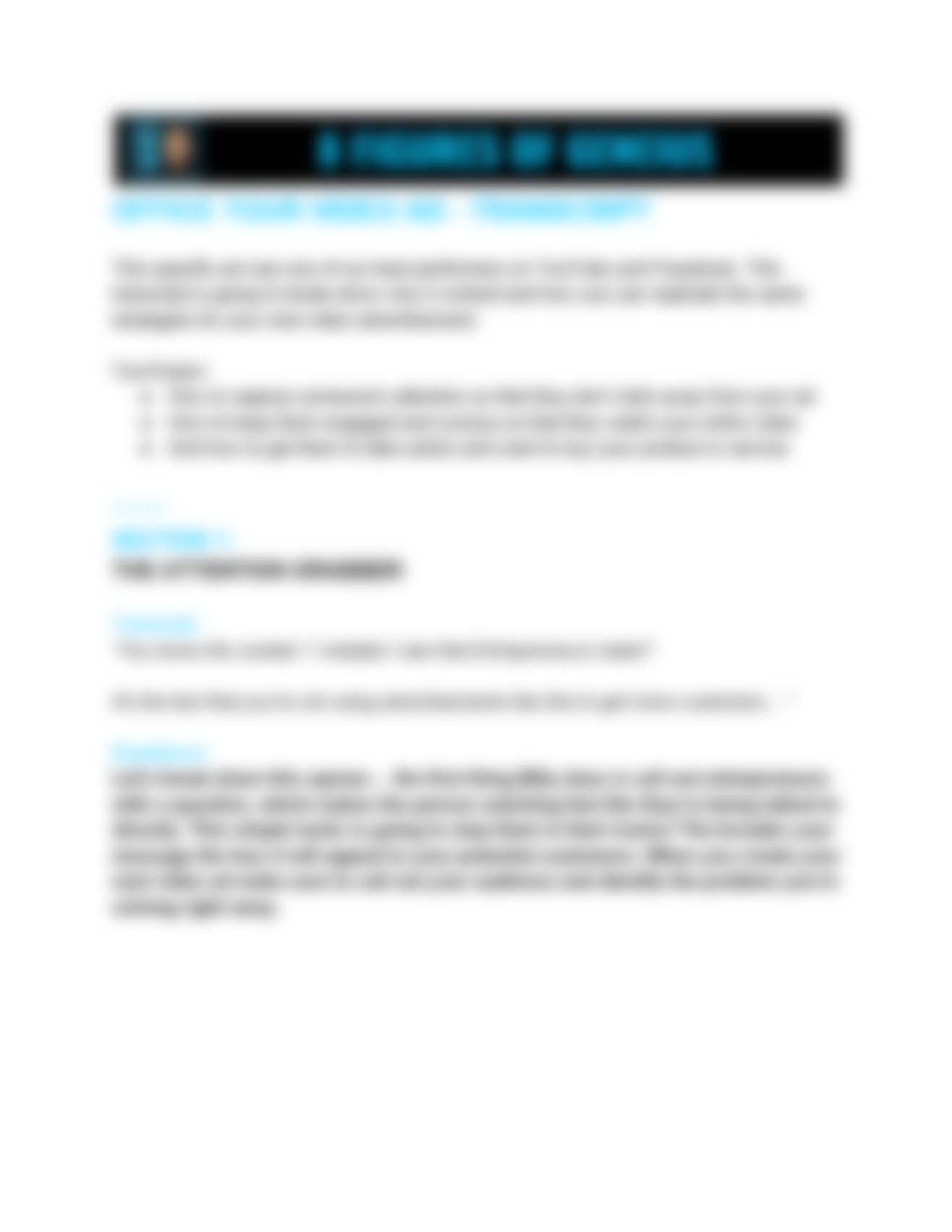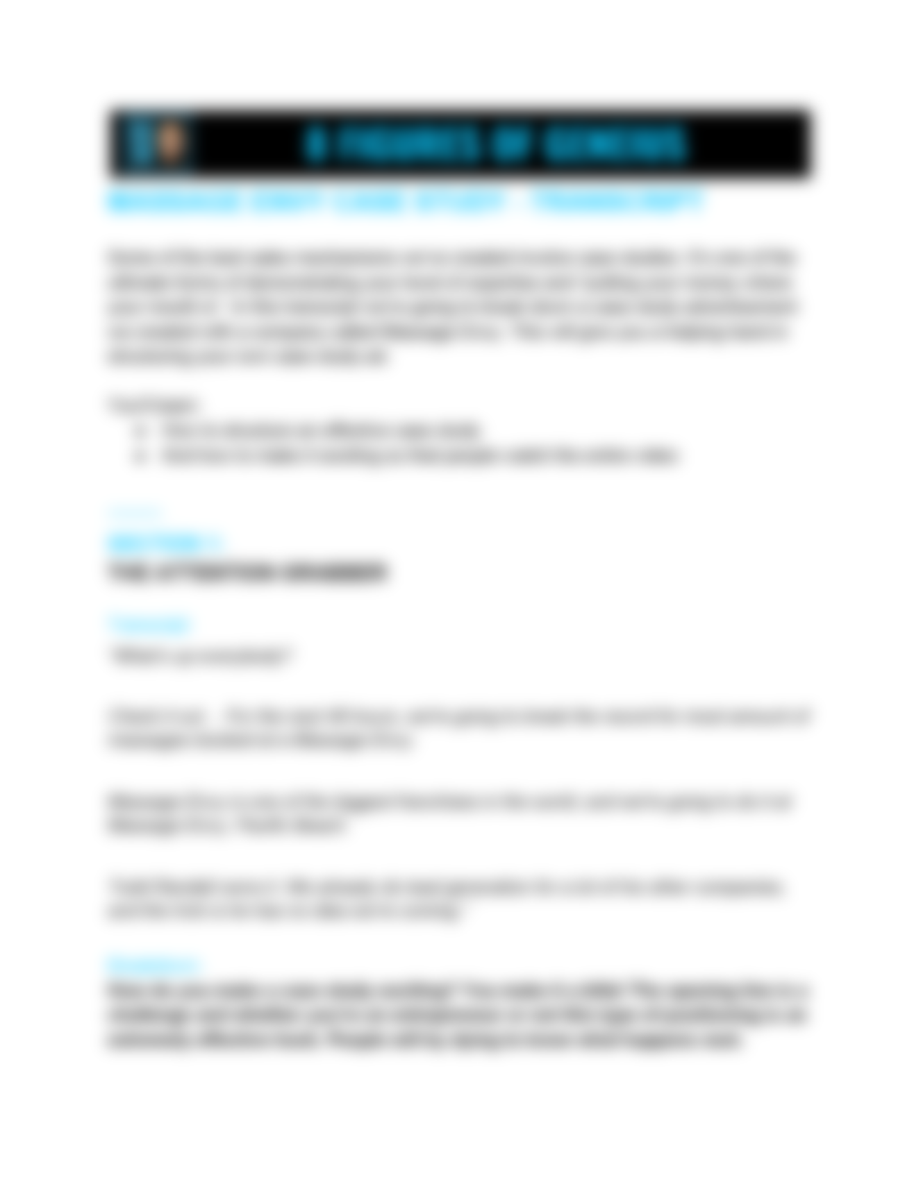 • The "Case Study" Transcript. In this transcript we break down a case study advertisement we created with a company called Massage (because nothing sells like proof).