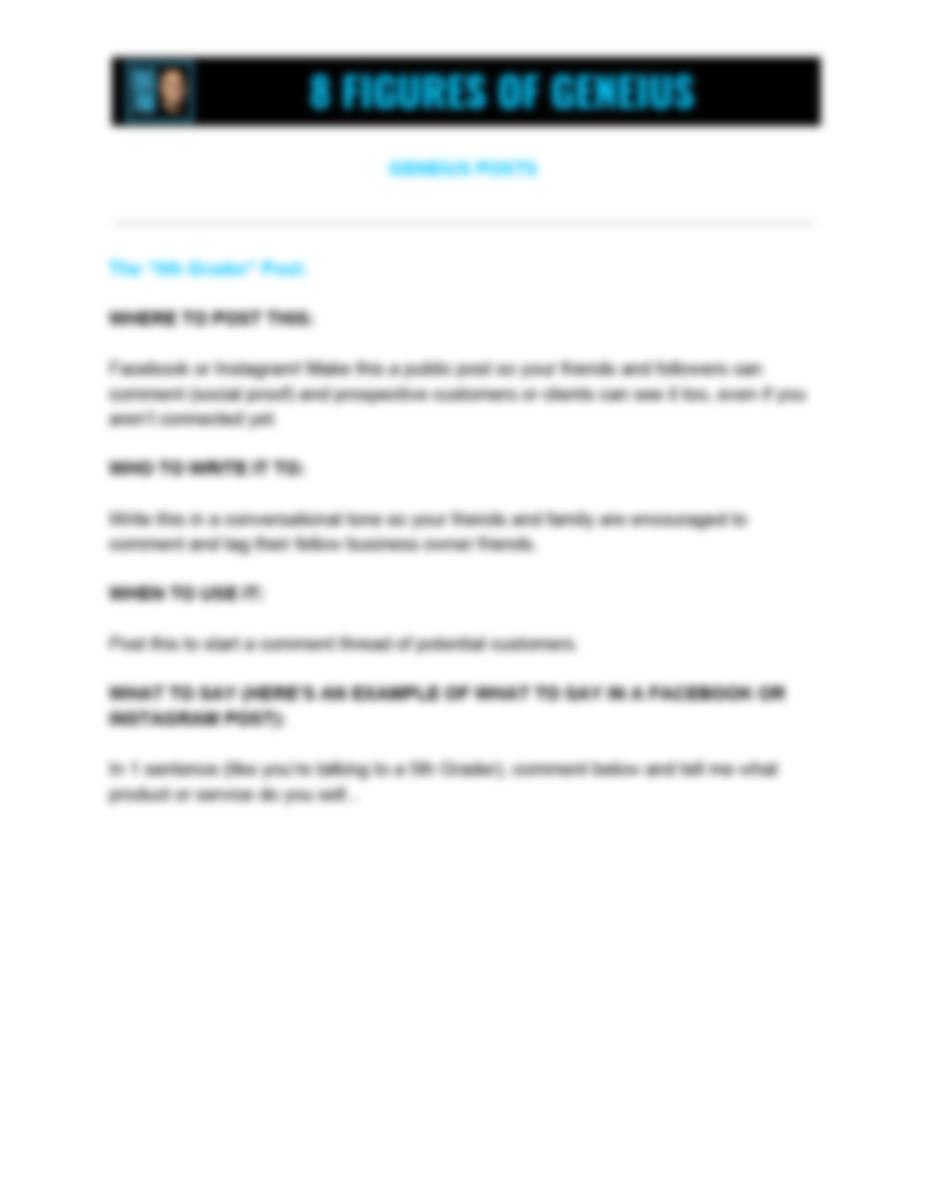 • The "5th Grader" Post that will help you and your potential customers understand each other better because a confused mind never buys.