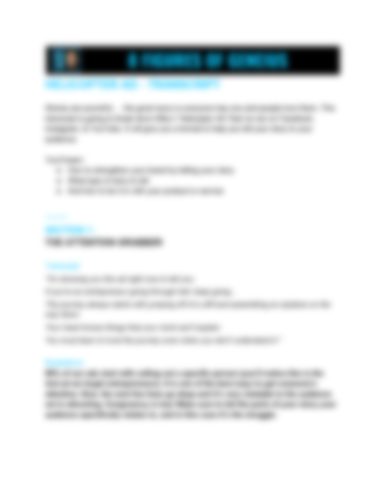 • "Tell Your Story" Transcript. People buy stories, not products. This transcript breaks down how Billy shared his personal story through a video ad. Copy this format and use it to tell your story too.