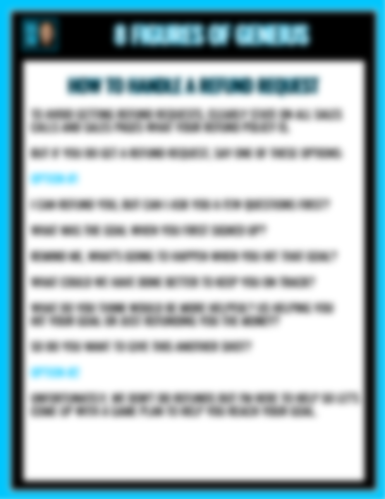 • My "Nevermind" Script. Use this if you ever hear the words... "I want to cancel" or "Give me a refund".