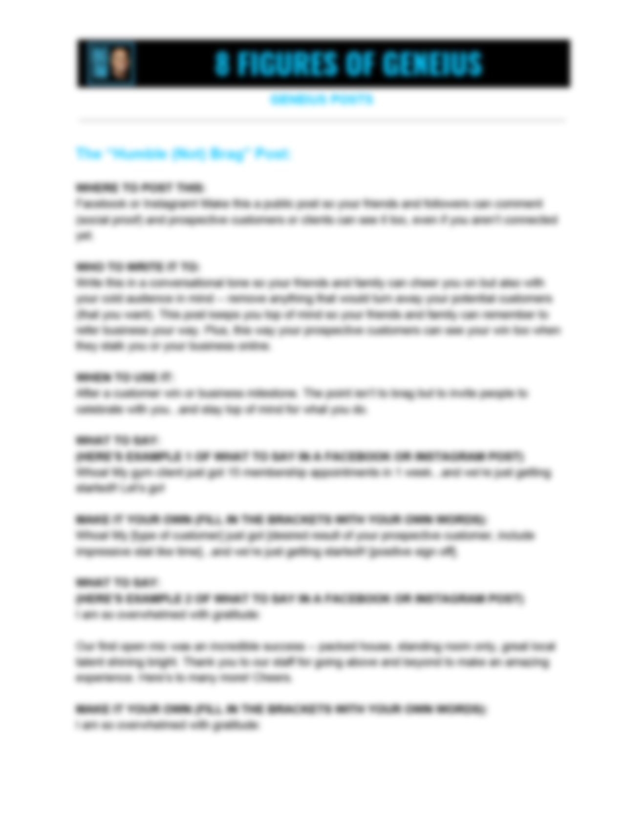 • The "Humble (Not) Brag" Post allows you to share your best wins and get positive attention from your friends, family, and potential customers without sounding like a show off.