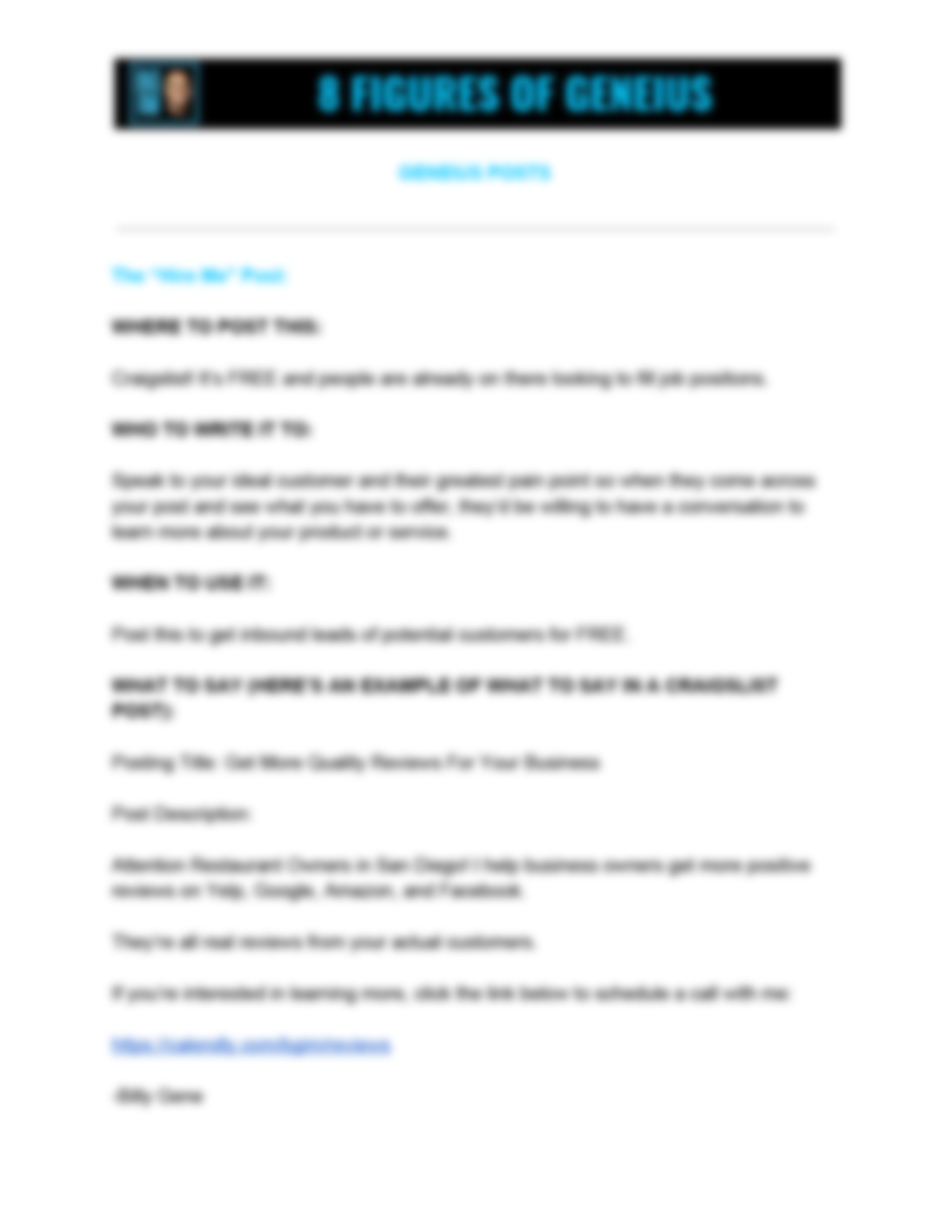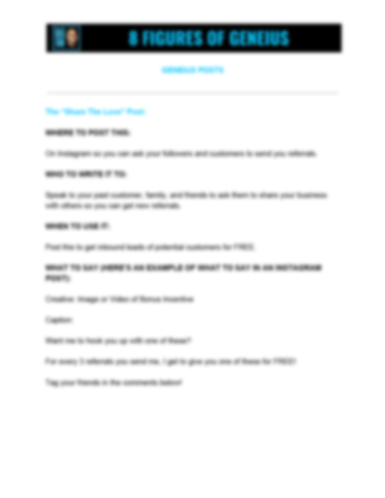 • The "Share The Love" Post that gets referrals to come to you that are more likely to convert.