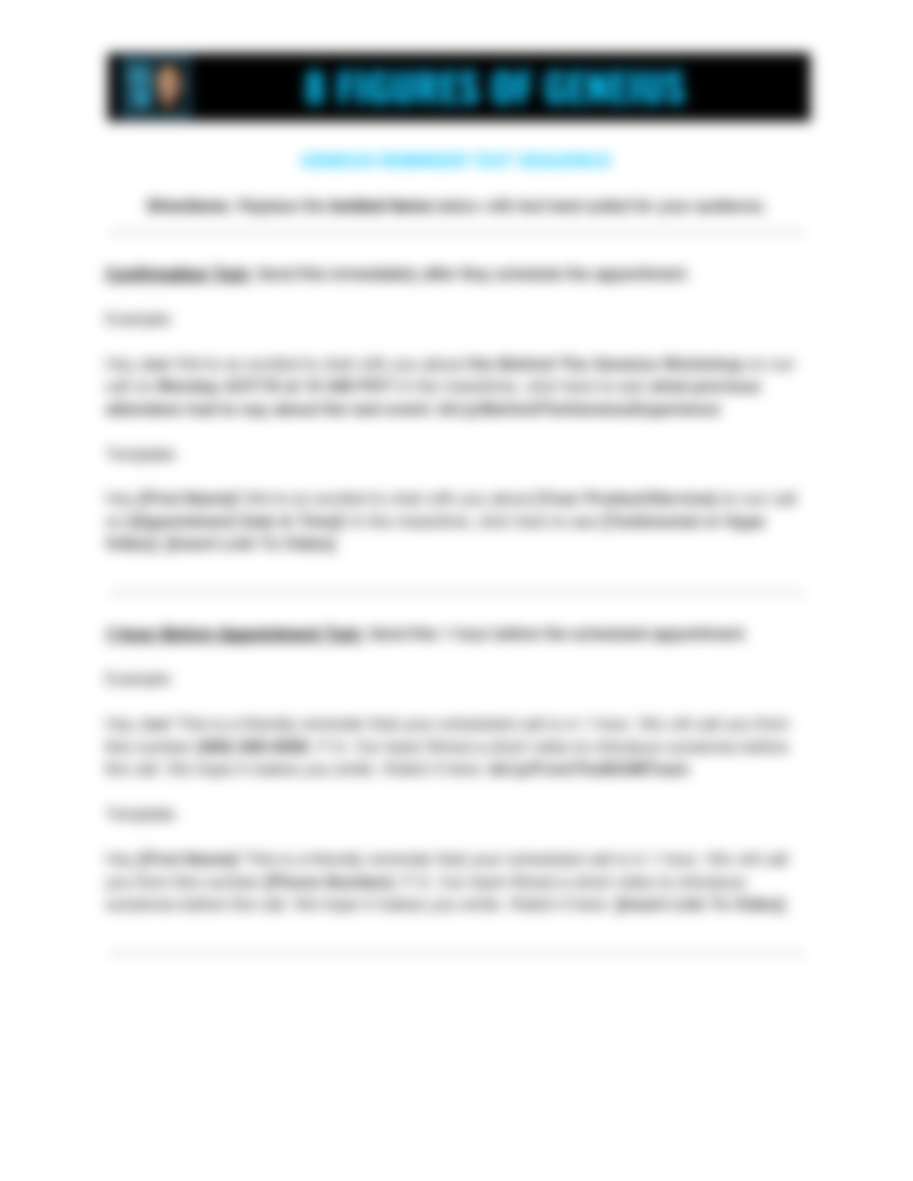 • Don’t know how to get people to show up to your scheduled appointments? Relax! This 3-part text reminder sequence will do the trick.