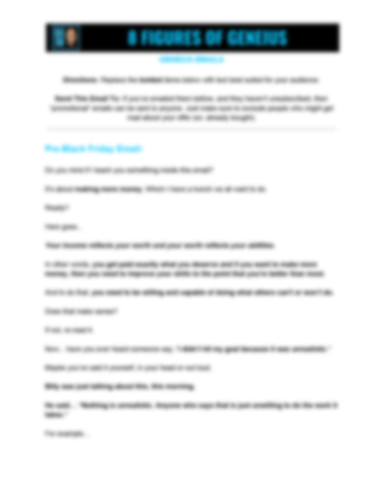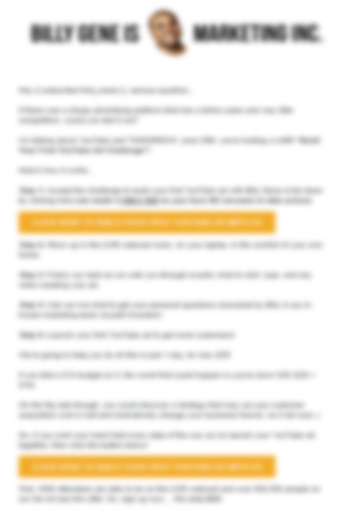 • The "You Don't Know Me But..." Email. Don’t have an email list yet? Just change a few words in this template, send it, and turn a complete stranger into a customer. It's already worked for a bunch of our students.