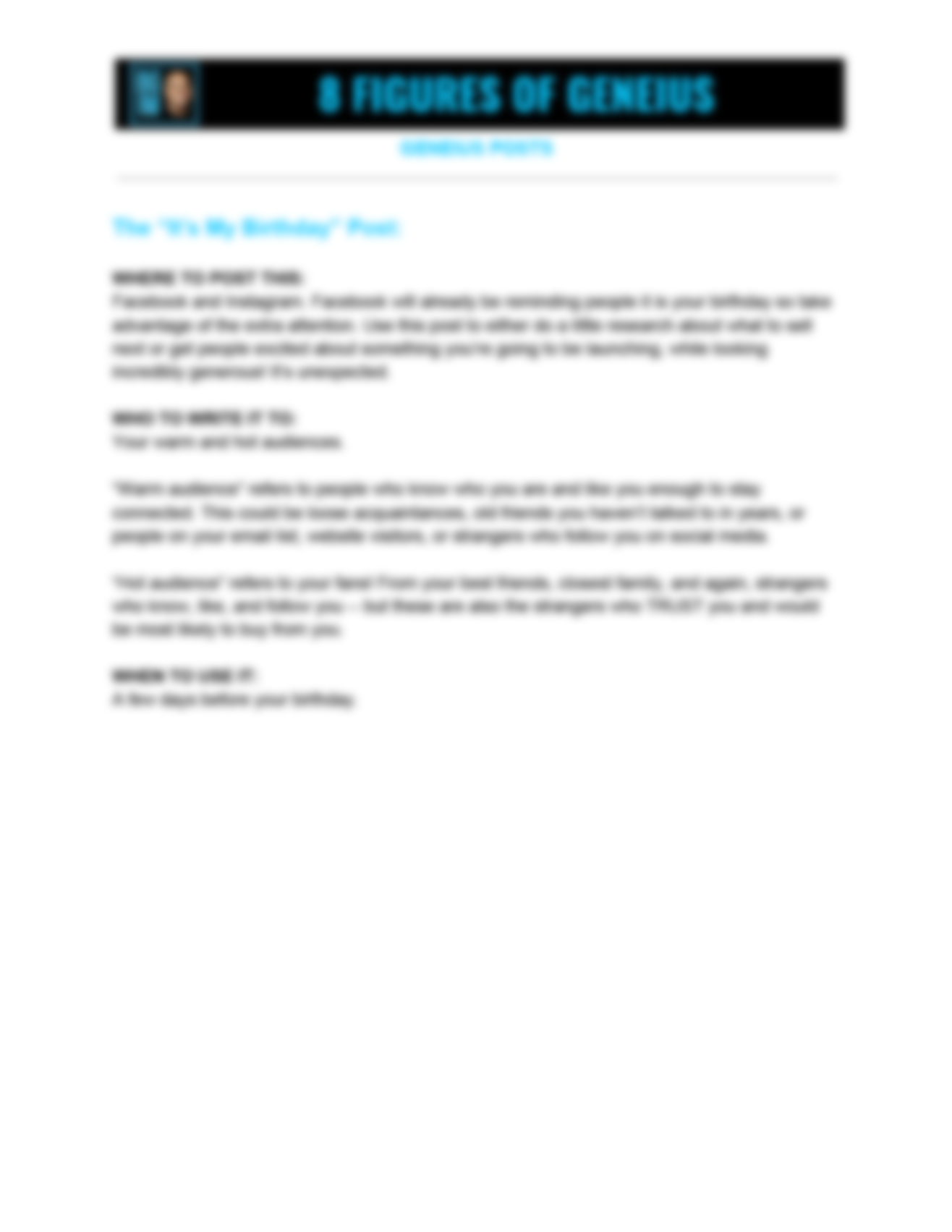 • The "It's My Birthday" Post that will give you all the gifts you need... customers.